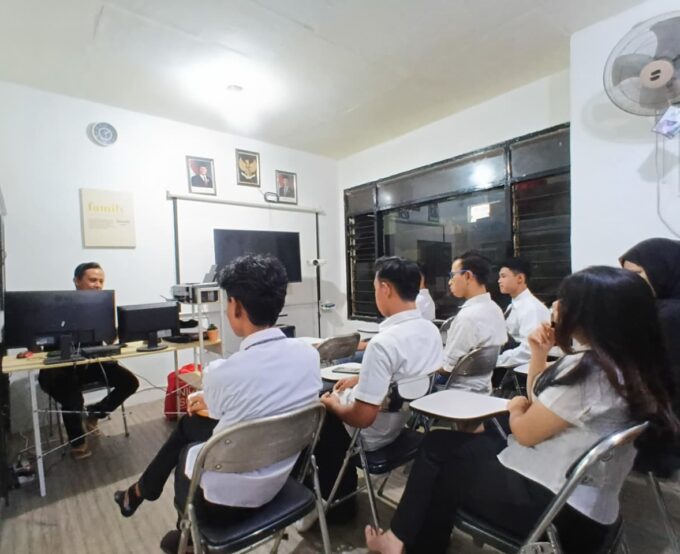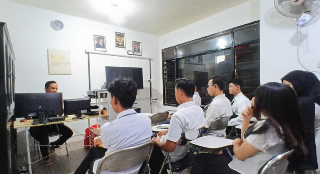 Ruang pelayanan administrasi di PKBM Bhinneka Bangsa didesain dengan konsep minimalis yang bersih untuk memberikan kenyamanan maksimal bagi tamu dan calon warga belajar. Area ini dilengkapi dengan meja kerja putih yang tertata rapi serta sofa tunggu modern berwarna abu-abu, menciptakan atmosfer profesional yang hangat. Aspek legalitas lembaga ditampilkan secara transparan melalui pajangan dokumen akreditasi, izin operasional, dan simbol kenegaraan pada dinding, yang mempertegas kredibilitas lembaga sebagai penyelenggara pendidikan kesetaraan yang sah. Beralih ke ruang kelas atau ruang belajar, fasilitas ini dirancang untuk mendukung interaksi edukasi yang fokus dan efektif. Ruangan ini dilengkapi dengan kursi belajar ergonomis serta sarana teknologi berupa layar monitor besar untuk presentasi materi pembelajaran digital. Pencahayaan yang terang dan penataan tempat duduk yang teratur menciptakan lingkungan akademik yang kondusif bagi peserta didik untuk mengikuti bimbingan atau ujian. Secara keseluruhan, integrasi antara ruang pelayanan yang ramah dan ruang kelas yang modern menunjukkan kesiapan PKBM Bhinneka Bangsa dalam memberikan layanan pendidikan bermutu tinggi bagi masyarakat.